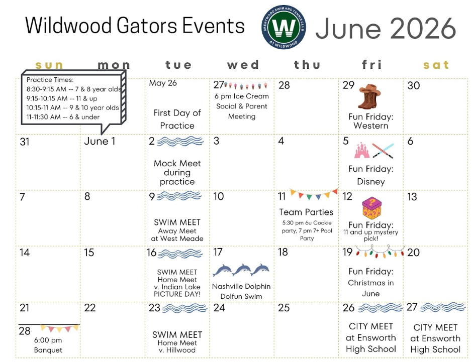 2026 Gator Swim Team Schedule